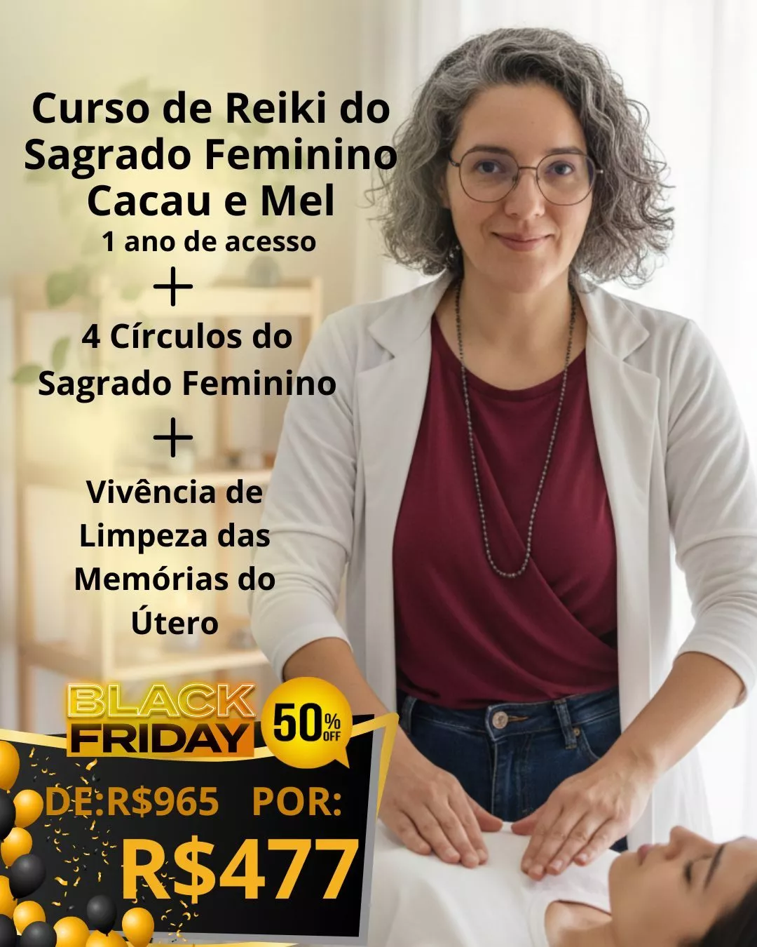 Com o curso Reiki do Sagrado Feminino - Cacau e Mel, desperte a intuição, cure feridas do feminino e expanda seu campo energético. Reconecte-se com a essência criadora e o propósito de alma, integrando o feminino sagrado, espiritualidade prática e rotina diária. Inicie sua jornada de transformação real no dia a dia, ativando a energia do útero energético como centro de força criadora e reconectando-se com a energia amorosa do feminino.